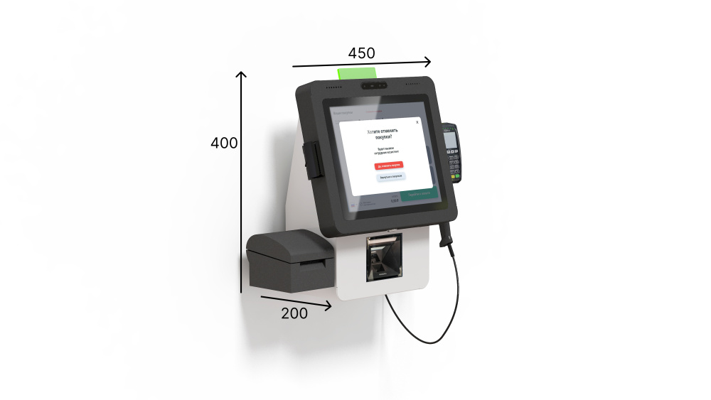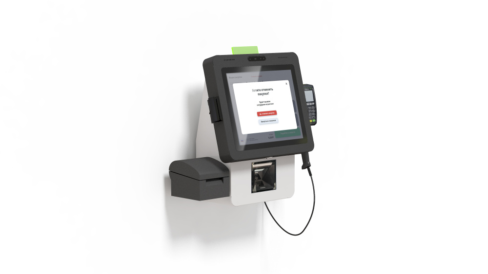 Касса самообслуживания «POScenter SCO-K170 Light_V2» — разработана для экспресс покупателей с небольшим количеством покупок, с креплением на стену или прилавок и минималистичным дизайном.