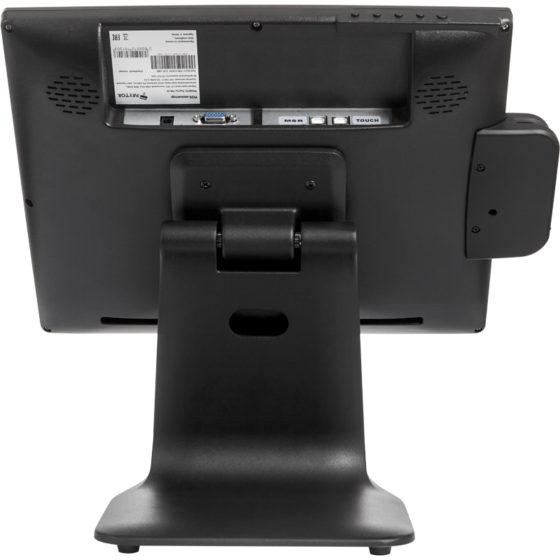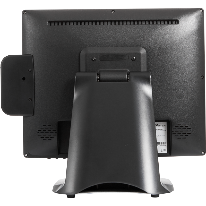 Встроенный считыватель магнитных карт на 1-2-3 дорожки позволяет производить идентификацию сотрудника или клиента (в рамках реализации программы лояльности), а специальным образом утяжеленная подставка из алюминия с задней пластиковой крышкой не только придает монитору устойчивость, но и позволяет спрятать кабели, обеспечивая аккуратный внешний вид рабочего места.