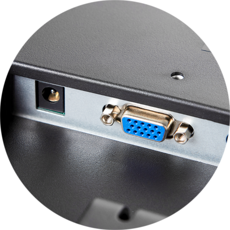 Подставка монитора регулируется и позволяет изменять угол обзора для удобства кассира. На задней стороне монитора может быть установлен POS-компьютер с VESA 75*75 (например, PayTor IB-501, PayTor IB-502).
