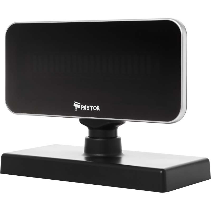 PayTor MB-220 – тонкий дисплей покупателя с мягкими закруглёнными углами и металлической окантовкой.